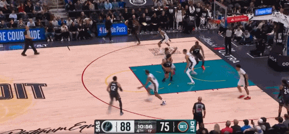 坎宁安转身过掉瓦塞尔后,篮下直面文班,一个胆大心细的高抛投,直接吃了文班亚马一个变态辣的火锅