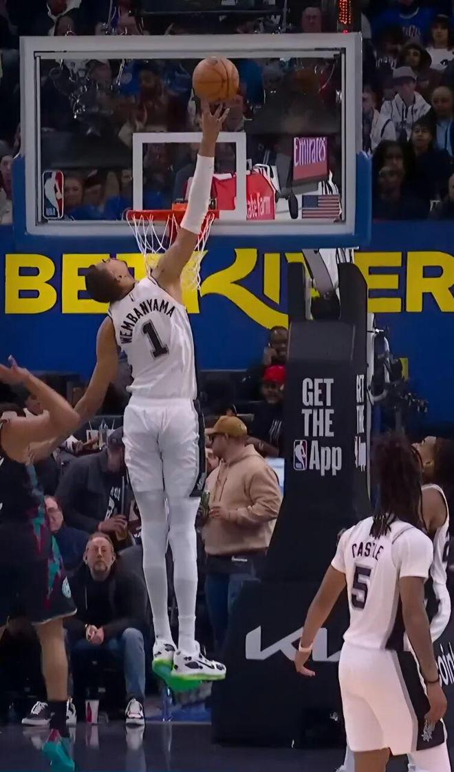 杜伦这身体素质也是够横的,趁着文班亚马转身不及,直接来了个杀人诛心的霸气隔扣2+1!