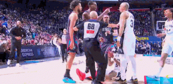 坎宁安卡位时一把推翻卡塞尔,引发冲突