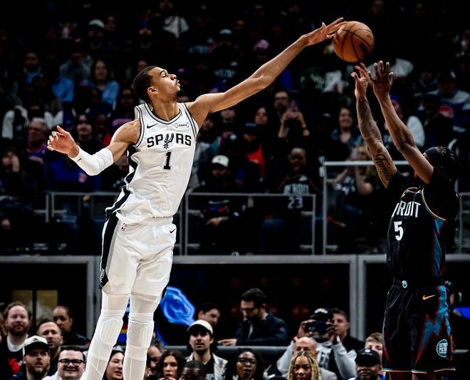 北京时间2月24日,NBA常规赛继续进行,圣安东尼奥马刺队前往客场挑战底特律活塞队。马刺队正处于8连胜之中,这是联盟现存最长连胜纪录;活塞队正处于5连胜之中,这是东部现存最长连胜纪录。活塞队战绩高居联盟第1,但这场强强对话开打之前,NBA官方更新了最新一期球队战力榜,马刺队反超活塞队高居榜首,活塞队屈居第2位。此役,杜伦解除禁赛,斯图尔特继续禁赛,活塞首发五虎为CC+杜伦+哈里斯+罗宾逊+奥萨尔,马刺首发五虎为文班亚马+福克斯+卡斯尔+瓦塞尔+尚帕尼。
