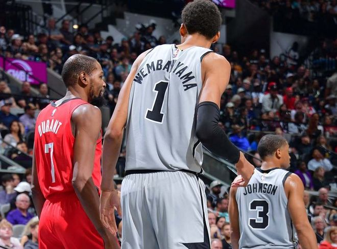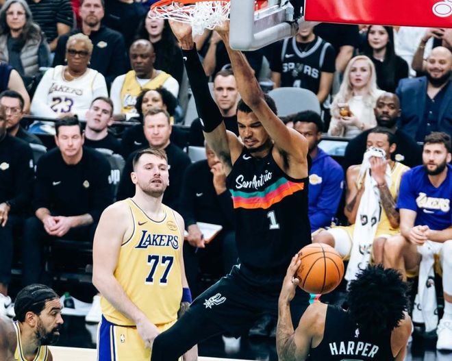 其次,马刺整个阵容框架,确实太凶猛了!场均8人得分上双,文班亚马场均24分+福克斯19分+卡斯尔16.6分+瓦塞尔14.2分+约翰逊13.2分+哈珀11.1分+尚帕尼11分+巴恩斯10.5分,全联盟找不出这么深的阵容配置。他们也有打一大四小的天然配置,首发两个持球点,替补两个持球手,文班亚马也能拉出来投射。但最有趣的一点来了,在12月中下旬三杀雷霆后,马刺一度攀升至NBA实力榜第一。但也就是登顶第一宝座后,他们开始表演,从打爵士起,一直到1月中旬,他们来了一波4胜6负。