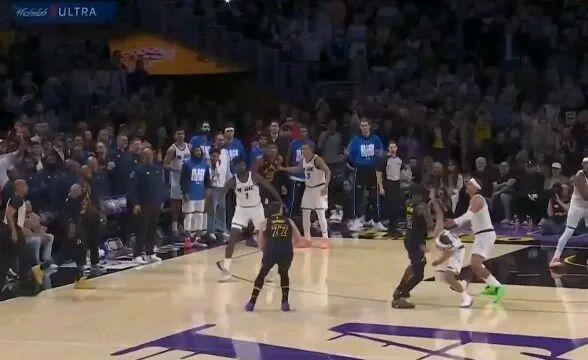 他却把球传给了左侧45°的老詹,在2.8秒的情况下老詹只能仓促出手。