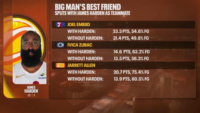 并且这样的现象并非偶然,过去数个赛季与哈登搭档的内线球员在数据与效率方面均有提升,从76人的恩比德到快船的祖巴茨,再到如今骑士的艾伦一直如此。