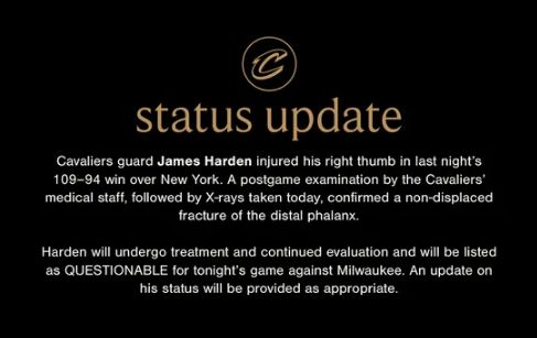 大家都在担心——哈登骨折,骑士咋办?