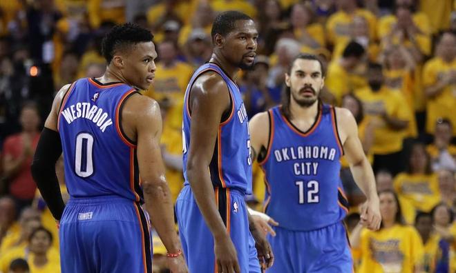 与此同时,威少的状态也是相当火热,场均同样也有26.8分、7个篮板和11次助攻的贡献,不得不说,彼时的威少身体素质和个人能力都是最为巅峰的时刻,无论是攻防转换后的个人一条龙反击,还是借助挡拆后的冲击篮筐,都让勇士队苦不堪言。而且二人之间的配合也是非常默契,尤其是威少成功串联起了球队,帮助雷霆取得了巨大的领先优势。