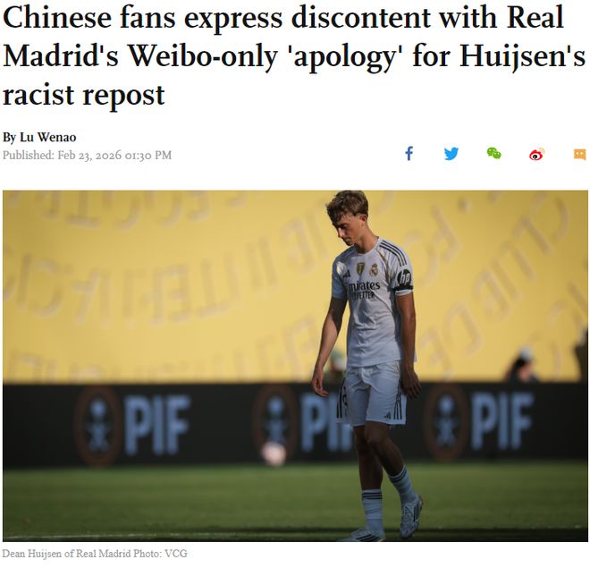 部分中国网友指出,涉事球员并未亲自在个人海外社交平台发布正式道歉声明或视频,俱乐部官网也未同步发布公告,相关海外平台未见公开说明,整体处理方式被批评为“看不到诚意”。