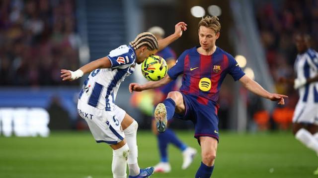 西甲第25轮,巴塞罗那主场迎战莱万特。贝尔纳尔梦幻开局奠定胜局,弗伦基·德容喜得赛季西甲首球,费尔明世界波重炮定格比分。巴萨3比0完胜,联赛主场16战莱万特全取16胜,续写西甲历史上任一主队对同一对手的100%胜率纪录。红蓝军团61分反超皇家马德里,1分优势重夺联赛榜首。