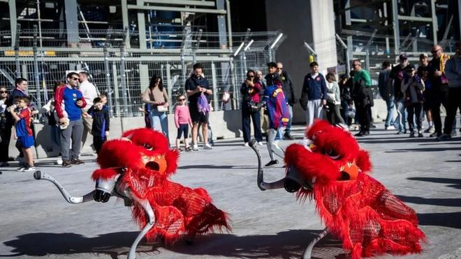 中国机器人诺坎普舞狮惊艳全场 巴萨马年庆典引爆科技文化热潮