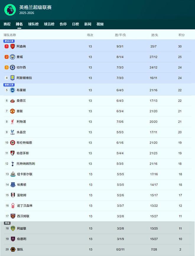 最终,切尔西和阿森纳1-1握手言和,阿森纳各项赛事连续17场不败,仍然领先曼城5分。
