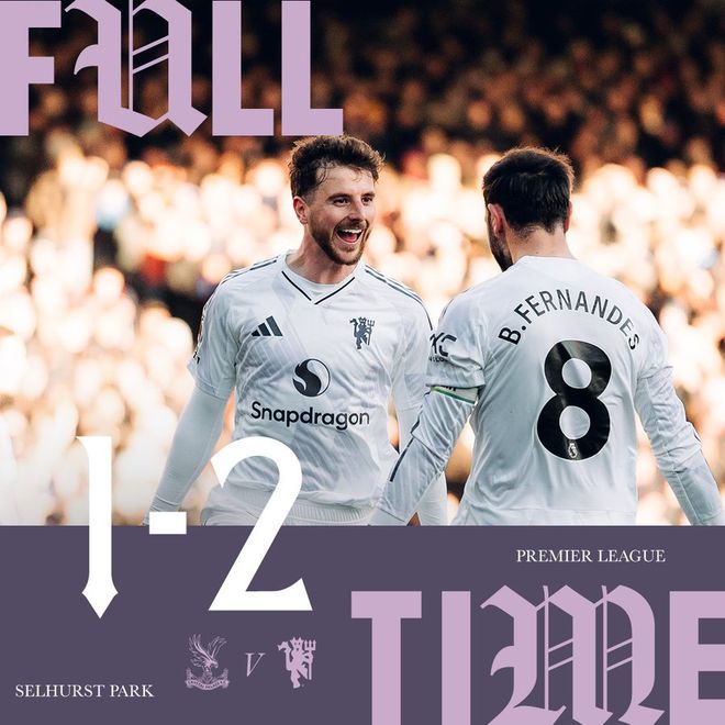 北京时间11月30日20:00,英超联赛第13轮,曼联客场挑战水晶宫。上半场,约罗送大礼,马特塔失良机;随后约罗铲倒马特塔送点,马特塔主罚点球破门,但被吹二次触球无效!重新主罚依然命中!半场补时,德里赫特滑倒送单刀,卢克·肖铲球封堵了恩凯提亚射门!下半场,B费任意球助攻,齐尔克泽0度角抽射破门!芒特远射破门反超!最终,曼联客场2-1逆转水晶宫,终结英超3轮不胜!